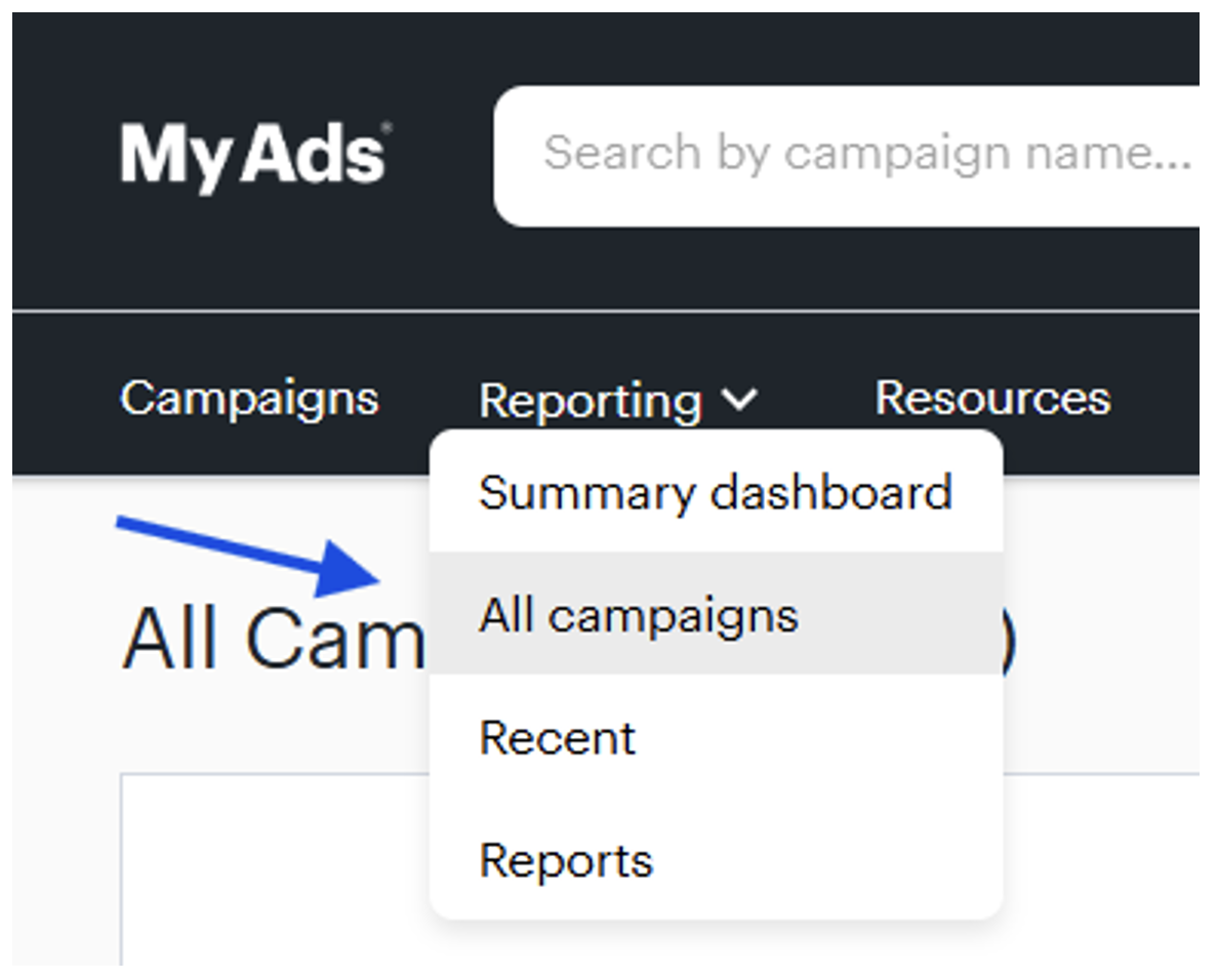 - From the reporting drop-down, click “All campaigns". This will display a list of all your current campaigns.