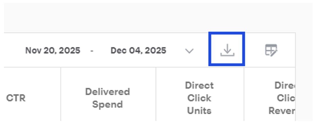 - To download this report, click the download icon found in the upper-right corner, next to the date range selector. Users can download a formatted report or a raw data report.